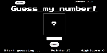 "Test your guessing skills with this fun game! You have to guess a number between 1 and 10, and you'll get feedback on whether your guess is too high or too low. Keep guessing until you get it right and earn points! But be careful, if you guess incorrectly, you'll lose points. Try to beat your high score and challenge your friends to see who can guess the number the fastest. Ready to play?